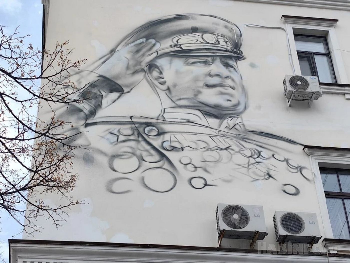Краски Победы: на стене в Хабаровске нарисовали маршала Жукова