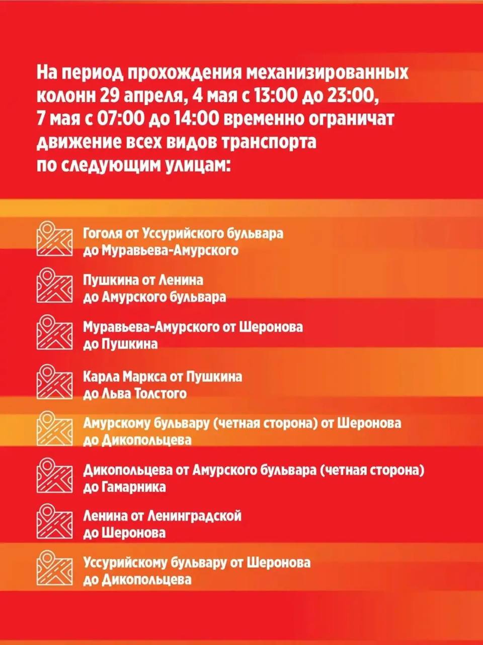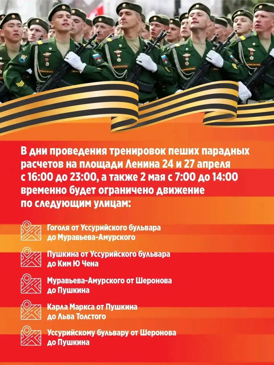 Напоминаем, что движение по определенным улицам города будет ограничено для движения и стоянки транспортных средств.Просим учитывать изменения при планировании поездок.Подробнее – в карточках.