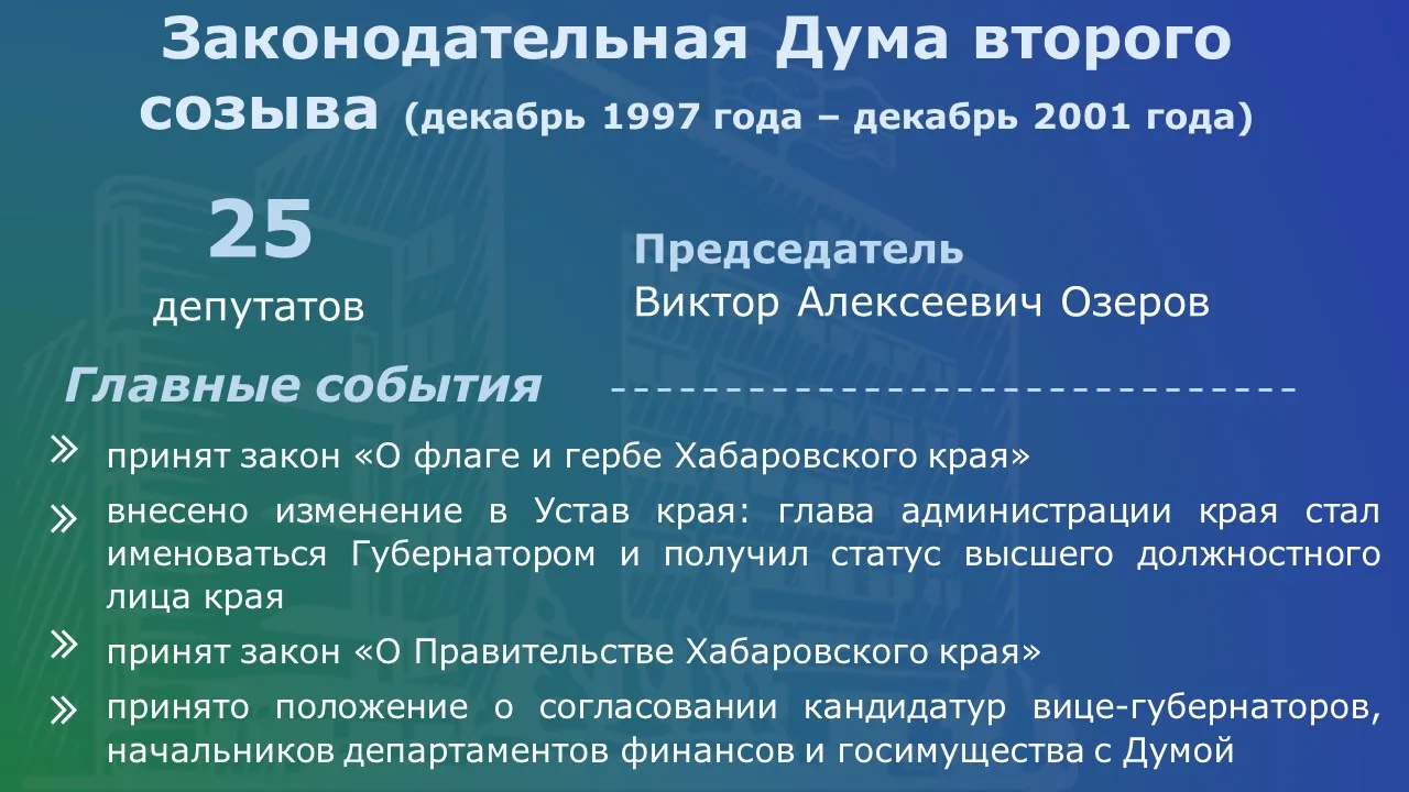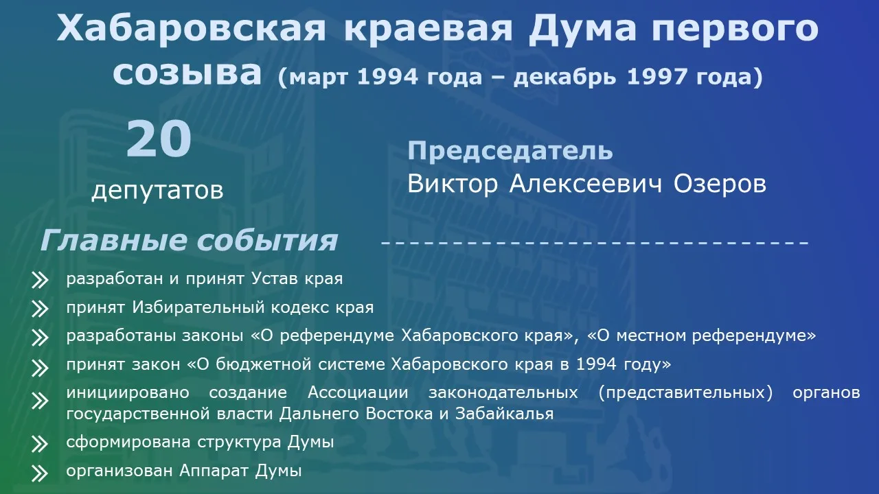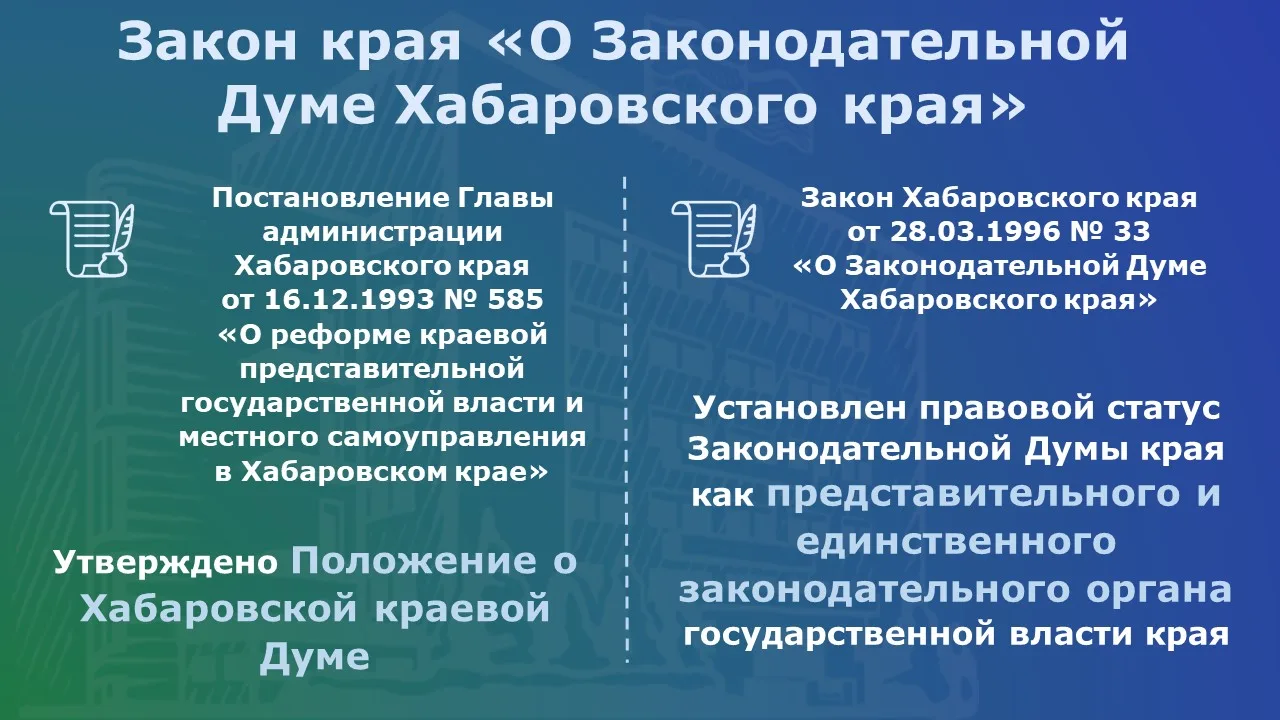 К 120-летию российского парламентаризма в Законодательной Думе Хабаровского края обобщили информацию о законодательной власти региона