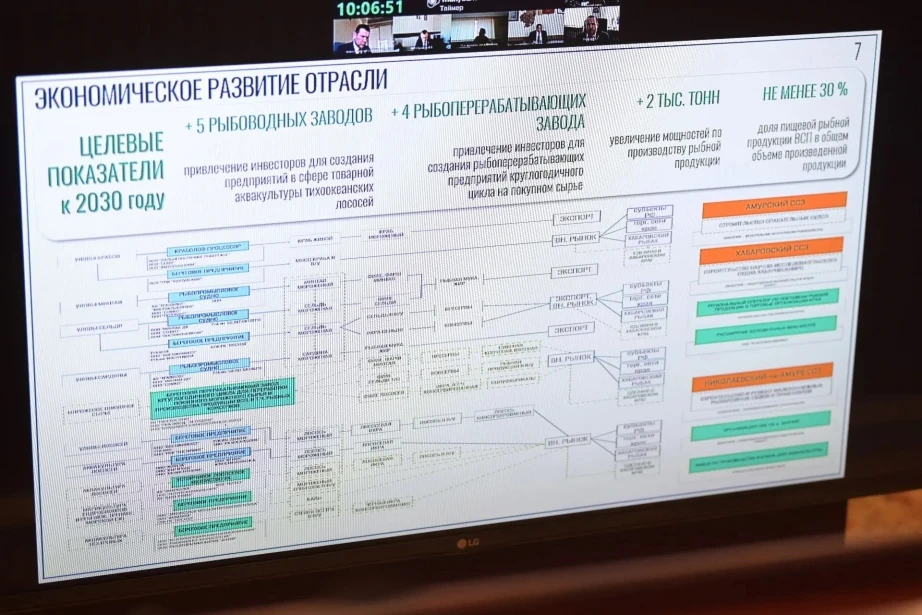 Также необходимо увеличить долю продукции высокой переработки. Сегодня на неё приходится всего 20%. По поручению Дмитрия Демешина разработана схема развития отрасли до 2030 года, предусматривающая строительство пяти рыбоводных и четырёх рыбоперерабатывающих заводов, увеличение мощностей по производству рыбной продукции на 2 тыс. тонн в год, доведение доли продукции глубокой переработки до 30%.