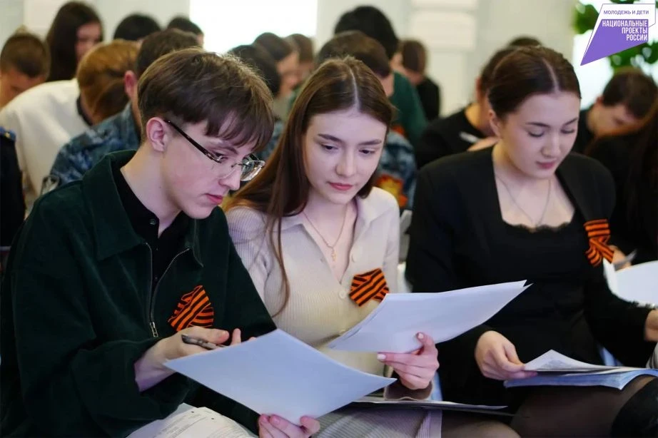 Диктант включал 25 вопросов: от военной истории до биографий полководцев. Вместе с ребятами писал диктант ветеран СВО Артем Бельский.