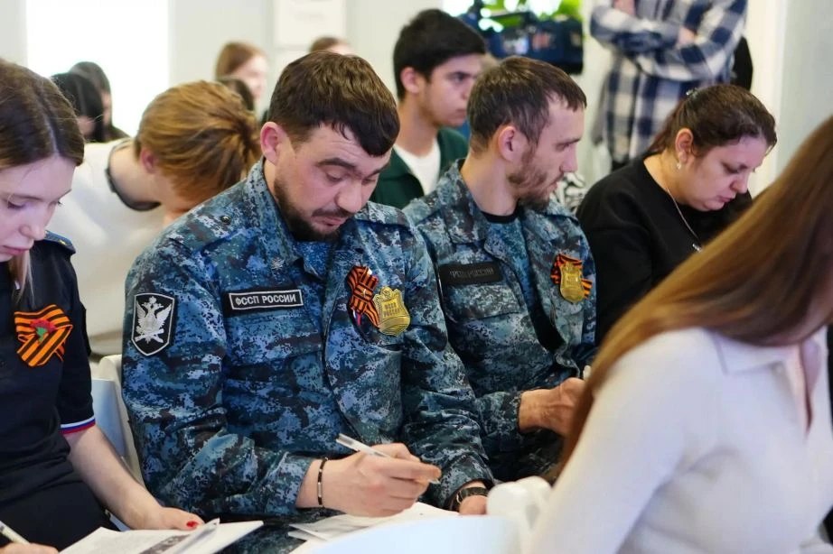 Диктант включал 25 вопросов: от военной истории до биографий полководцев. Вместе с ребятами писал диктант ветеран СВО Артем Бельский.