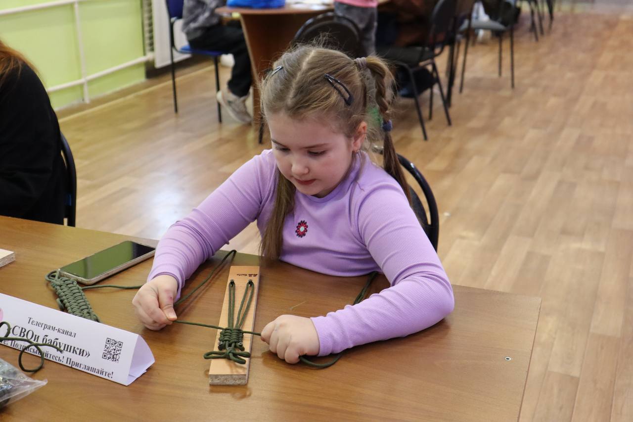 Ребята посетили четыре площадки: мастерили мягких Чебурашек как символ надежды, плели практичные браслеты выживания и нашлемники, а также собирали гигиенические наборы «сухой душ». Каждая такая вещь – это знак поддержки и заботы.