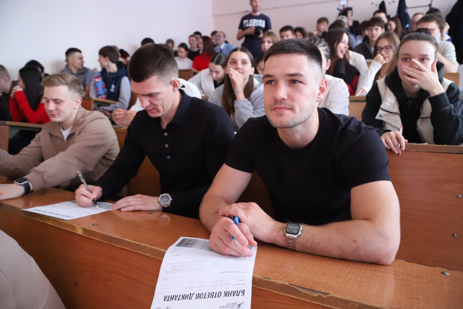 В Дальневосточной государственной академии физической культуры вместе со студентами диктант написали титулованные боксеры Иван Ступин и Савелий Садома. Участники ответили на 25 вопросов от легендарных спортсменов.