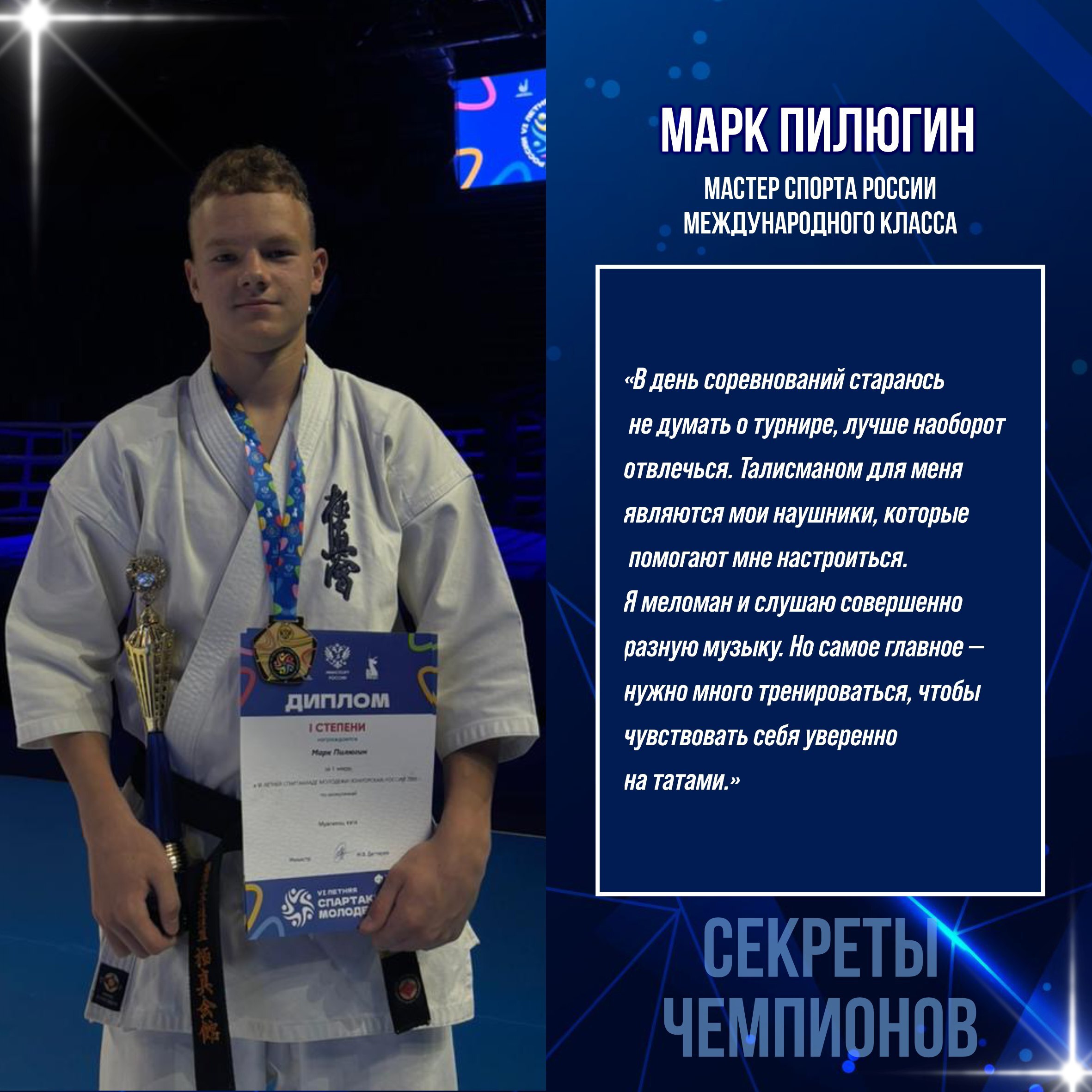 Марк Пилюгин – победитель первенства Европы, чемпион России и обладатель медалей Кубка страны, всероссийских и международных соревнований по киокусинкай.