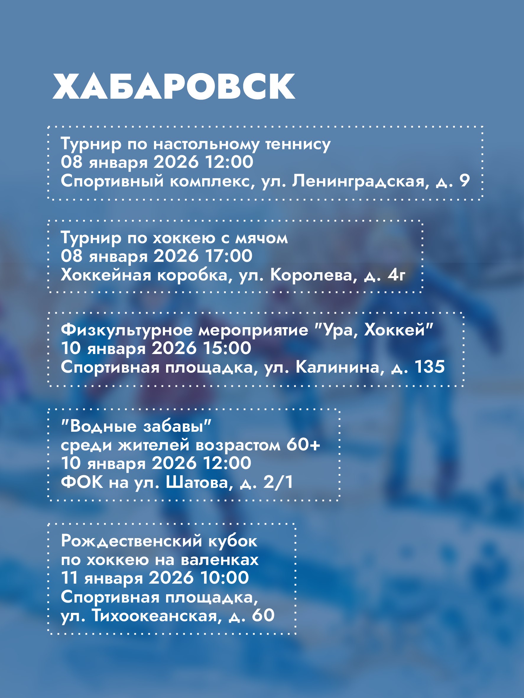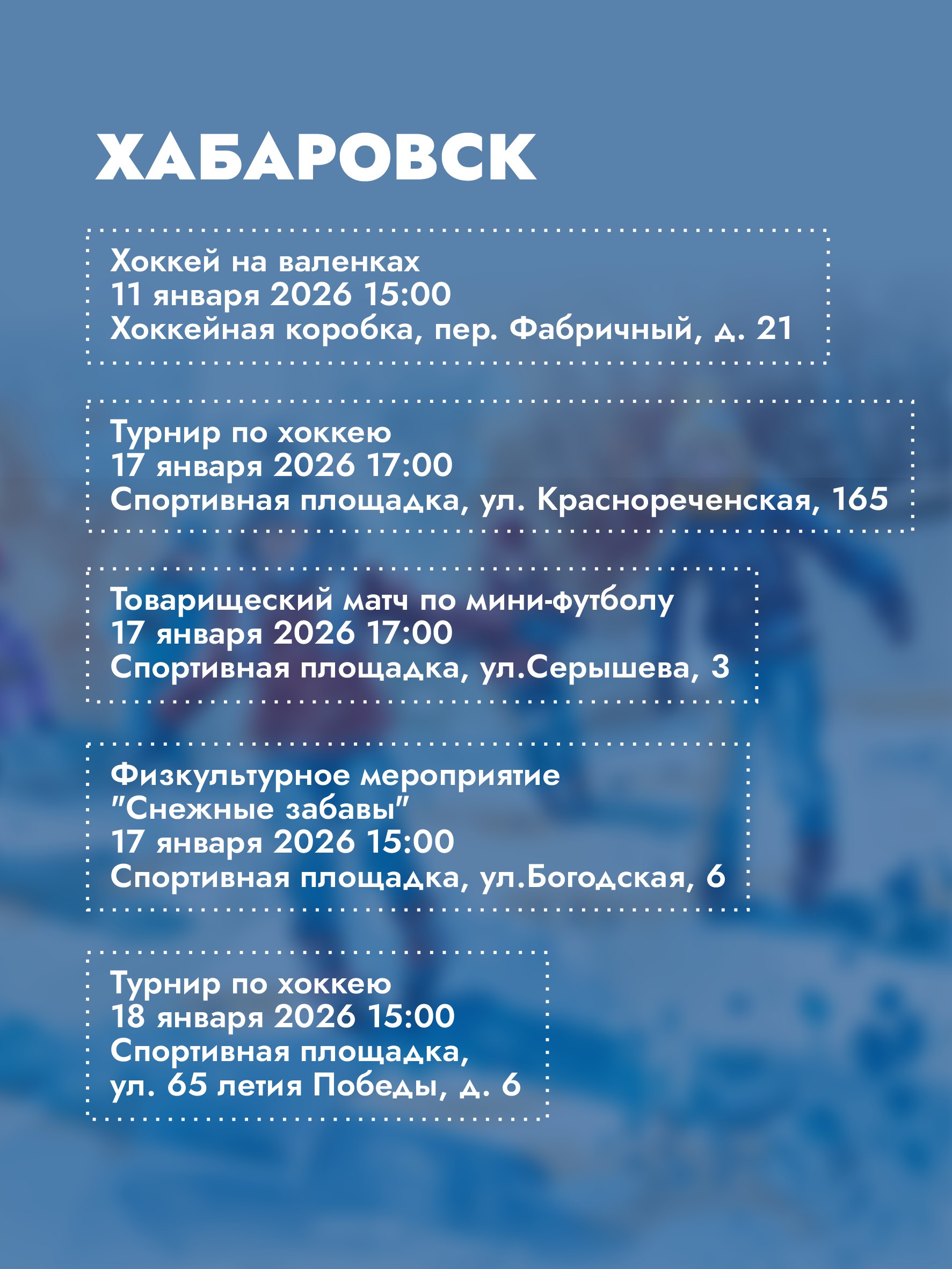 В Хабаровском крае работает множество уличных спортивных площадок: катки, спортплощадки для зимних игр.