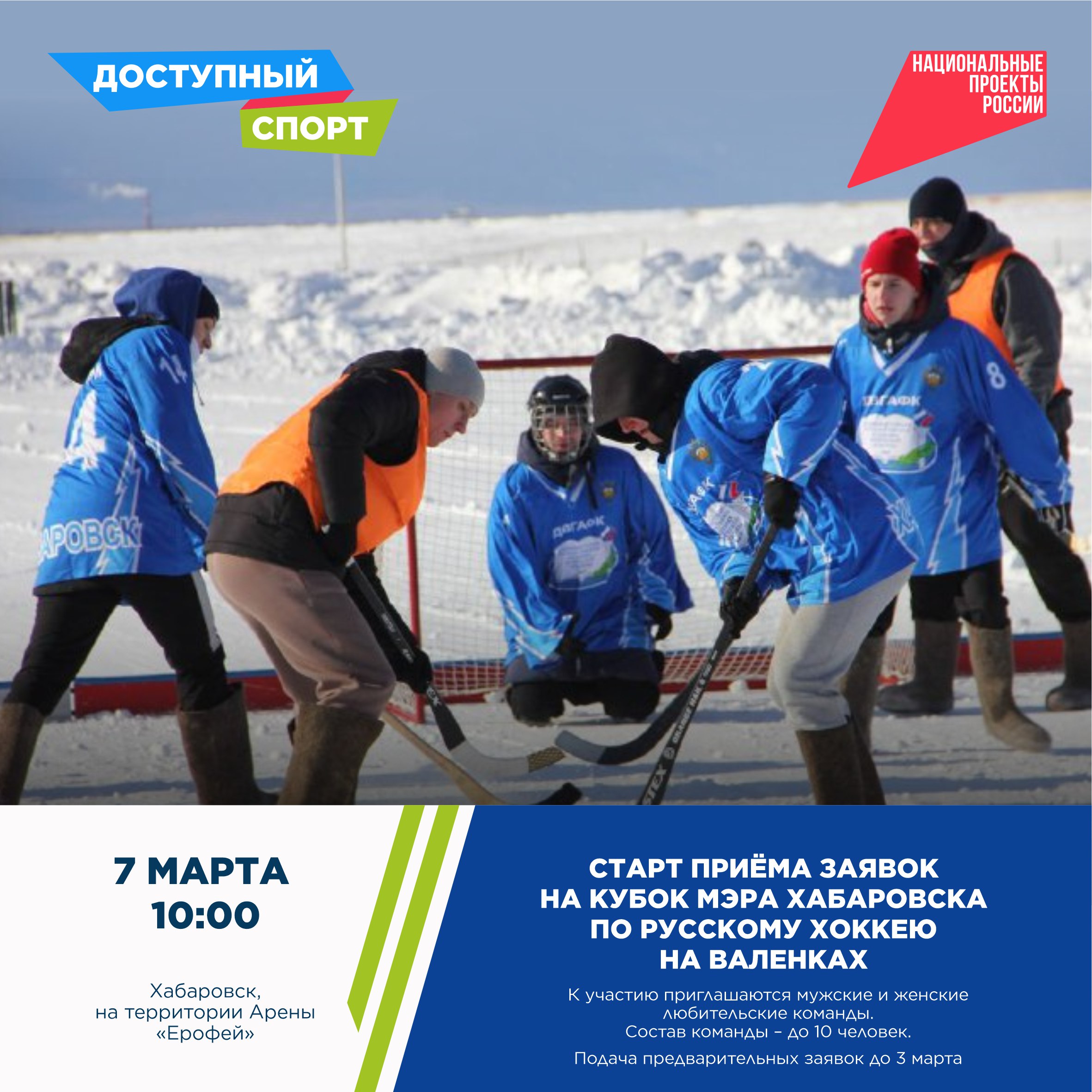 Также начинается старт приёма заявок на кубок мэра Хабаровска по русскому хоккею на валенках. Подробнее о том, как подать заявку смотрите по ссылке.
